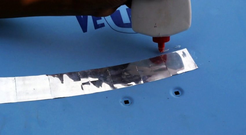 Затем они приклеиваются на внутреннюю поверхность тарелки обувным клеем. Лучше использовать именно его, так как он выдерживает повышение температуры. Хотя сама тарелка греться и не будет, но так на всякий случай.