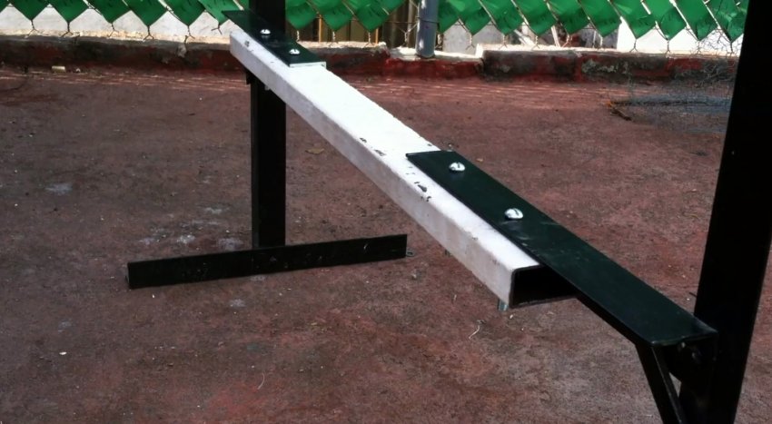 Из профильной трубы или уголка нужно сварить станину для тарелки. Если нет сварочного аппарата, подставку можно сделать из деревянного бруска. Для установки тарелку требуется просверлить в двух местах, и прикрутить к станине болтами. В результате они будут также служить осью для регулировки угла наклона.