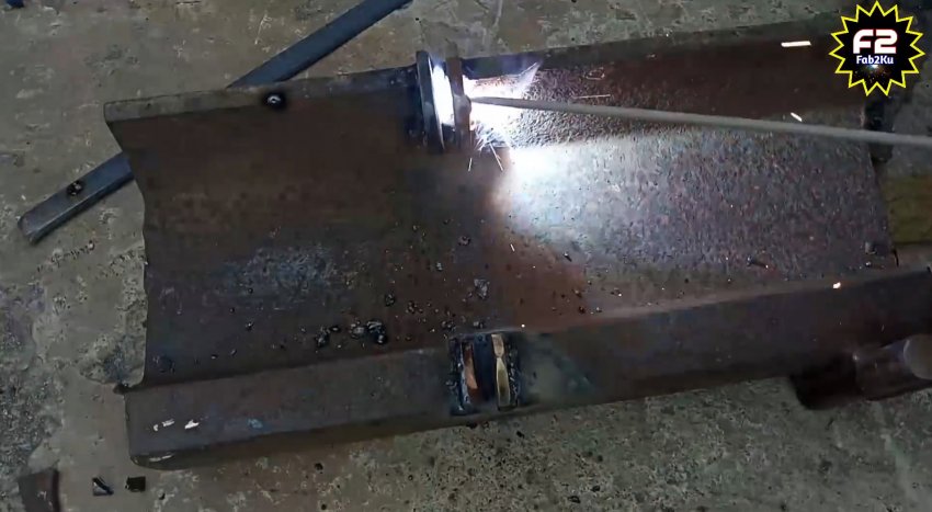 Убедившись, что заготовка свободно скользит между ограничителями, выполняем сварку по их периметру.