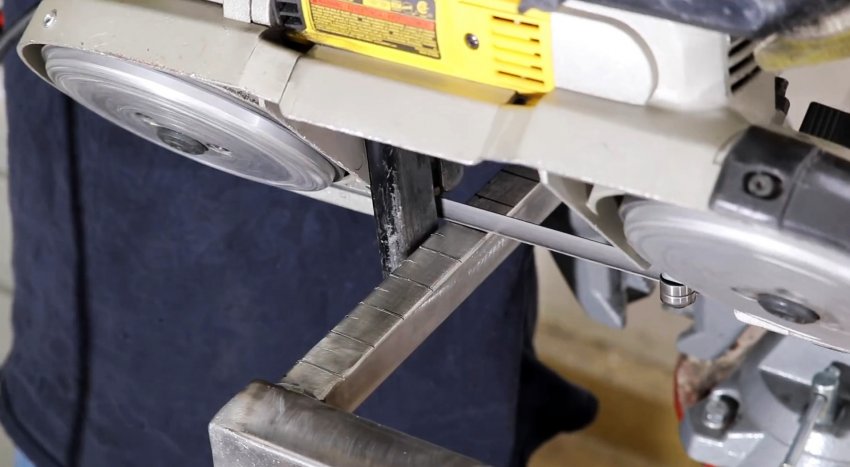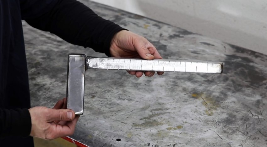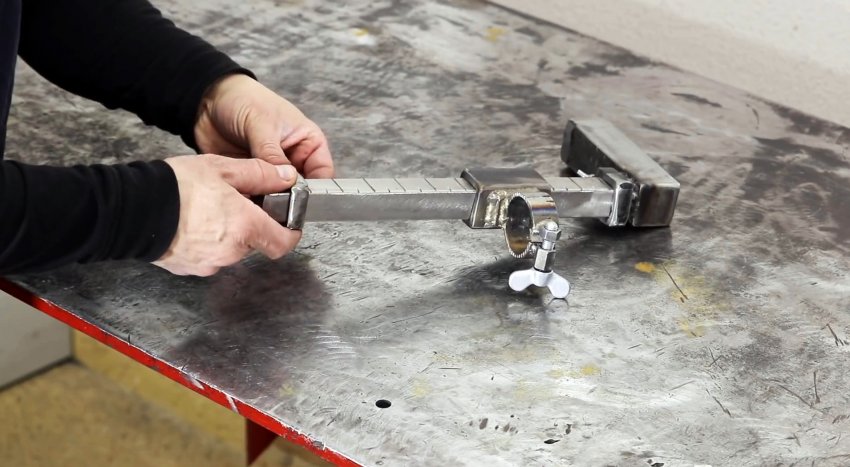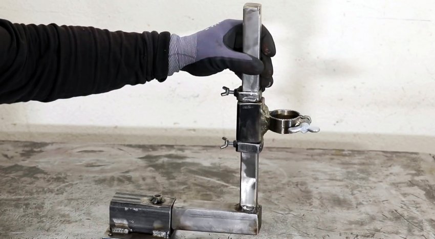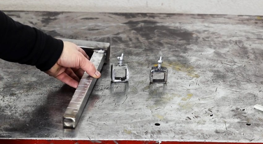 К краю подошвы под прямым углом приваривается отрезок трубы 15х15 мм длиной 300 мм. Открытый конец стойки также заваривается заглушкой.
