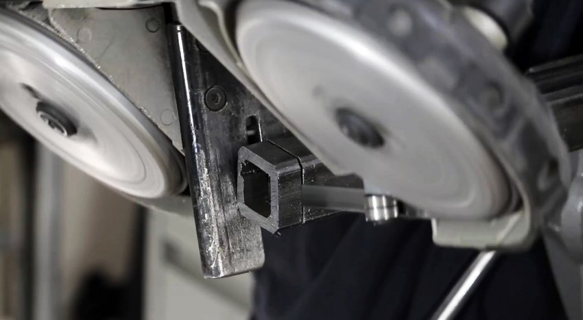 Из трубы 20х20 мм необходимо сделать ограничители на скользящее крепление дрели. Для этого выпиливается 2 узкие кольца.