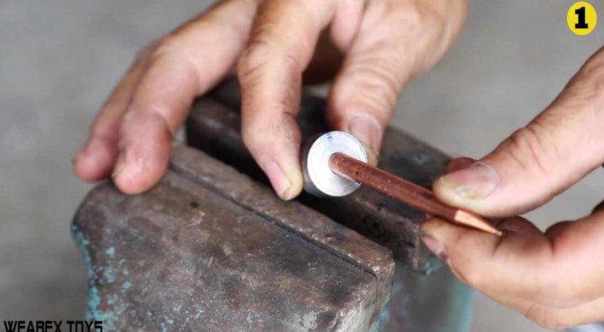 Из металлической болванки вытачивается заглушка на трубку с отверстием в центре для ввода жала паяльника.