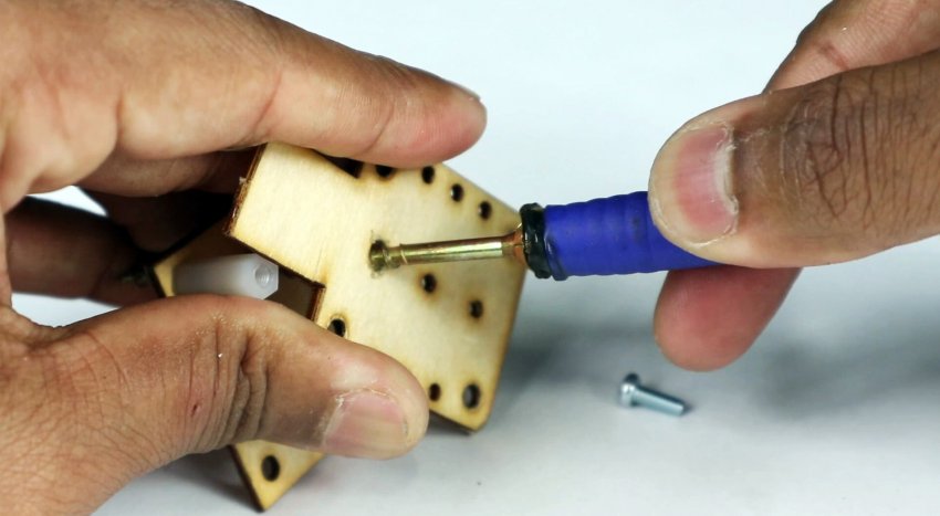 Далее расплавленной частью упираемся в головку винта. Ждем остывания 1-2 минуты.