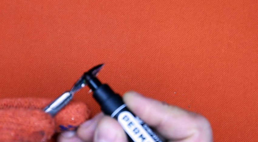 На блестящей заготовке маркером рисуется черная спинка и глаза рыбки.
