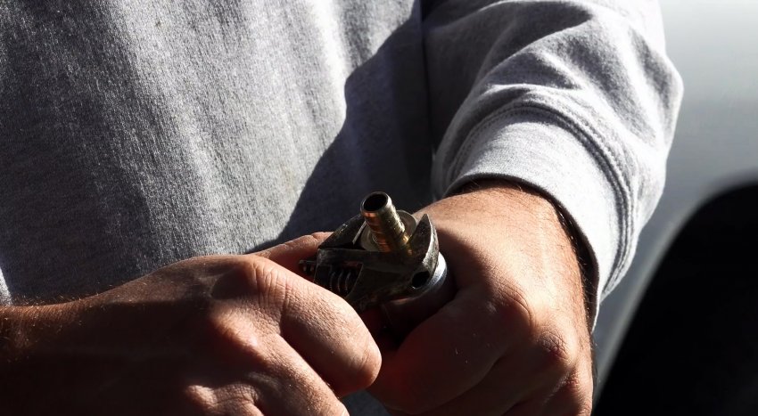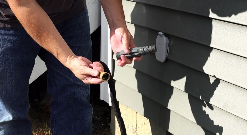 Остается только установить на садовый шланг быстроразъемный адаптер.