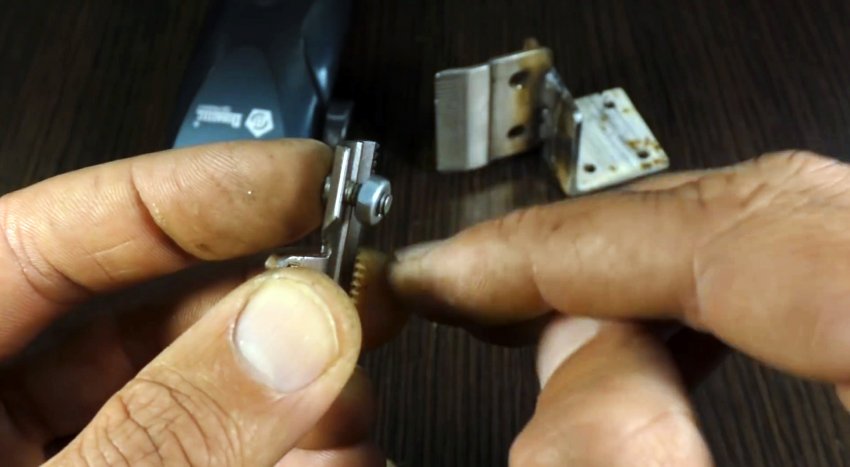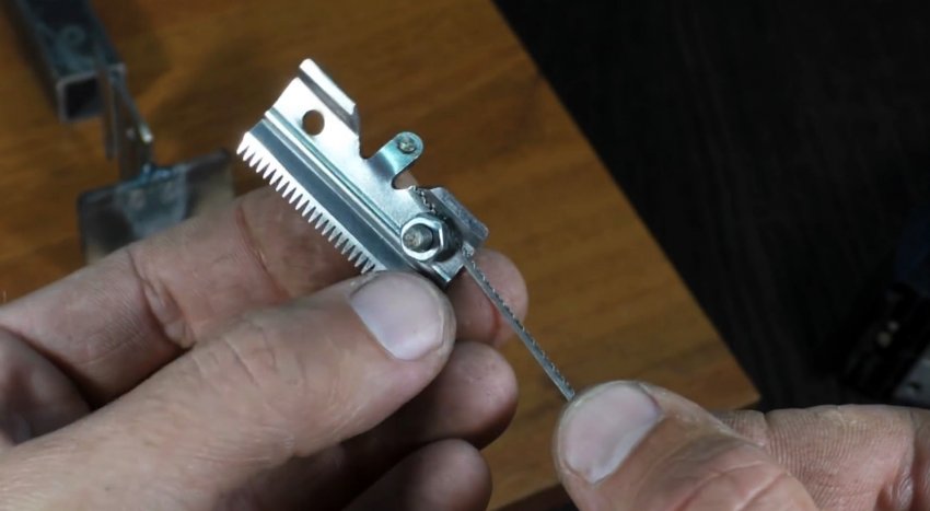 Пилочка зажимается одним концом на нож машинки, а вторым на сегмент, прилепленный к рычагу.