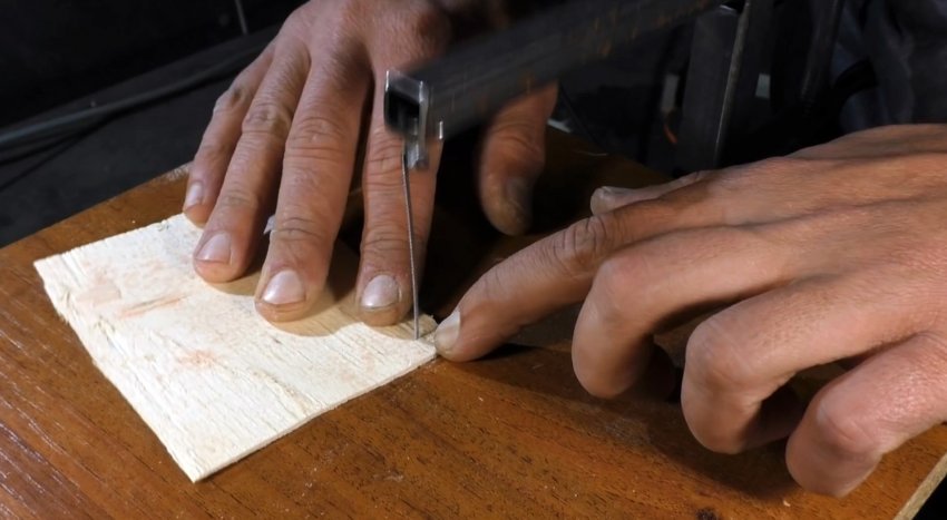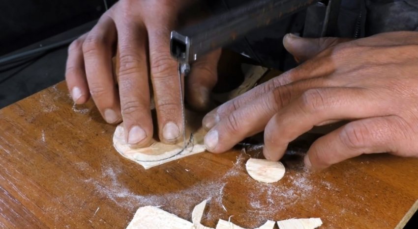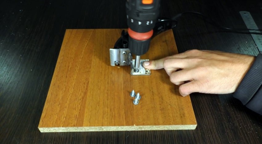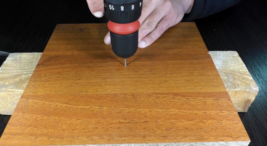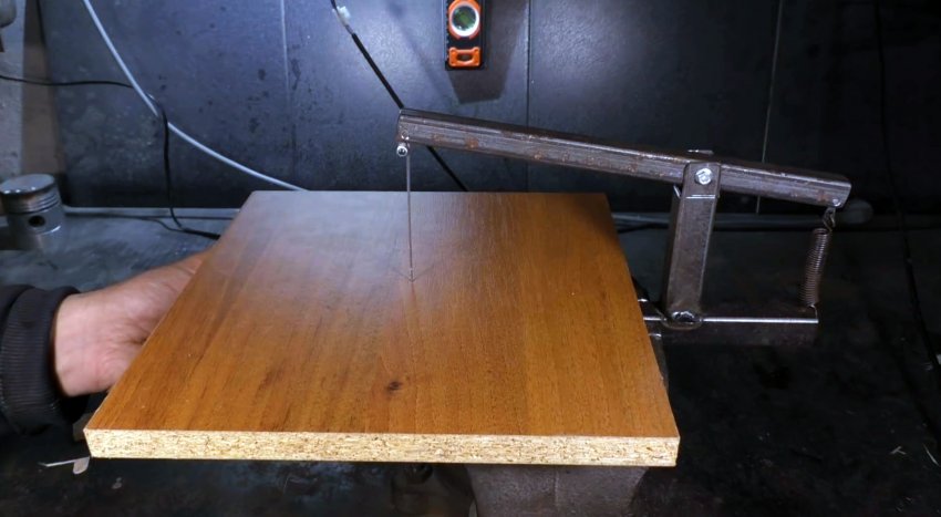 Из ЛДСП выпиливается столик станка. В центре в нем просверливается отверстие под полотно лобзика.