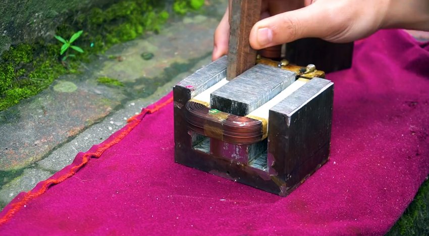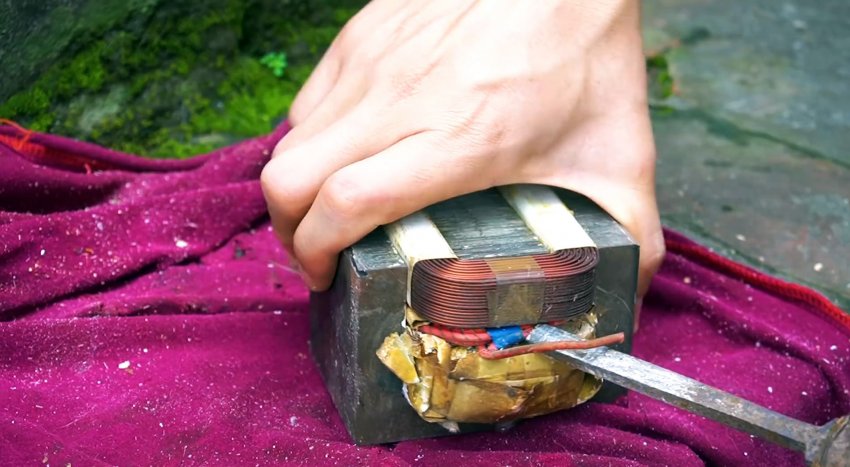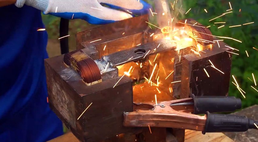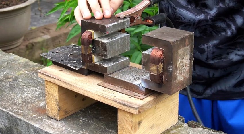Подготовленные трансформаторы свариваются вместе с применением одной из ранее срезанных пластин. Расстояние между ними должно быть достаточным для размещения доработанного якоря.