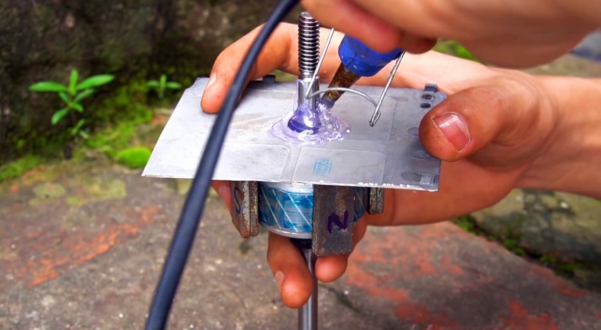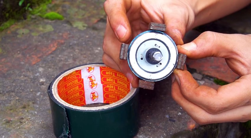 Далее нужно вынуть из любого компактного электромотора якорь.