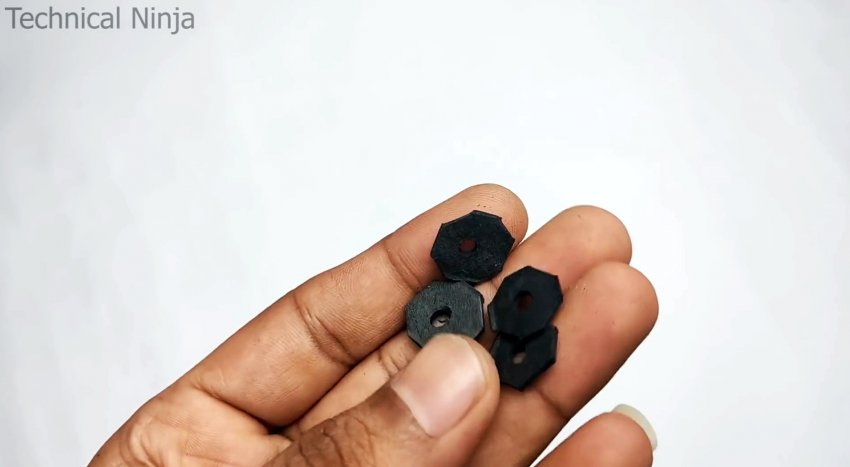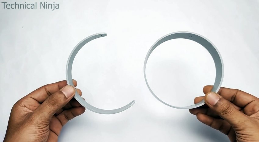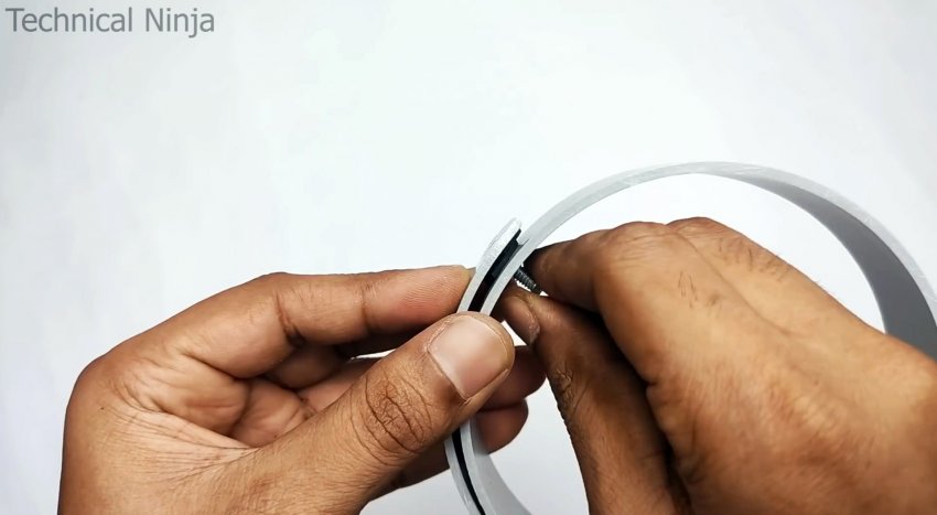 Из резины вырезаются шайбы. С их помощью нужно создать зазор между кольцом и полукольцом, и затем скрутить их винтами.