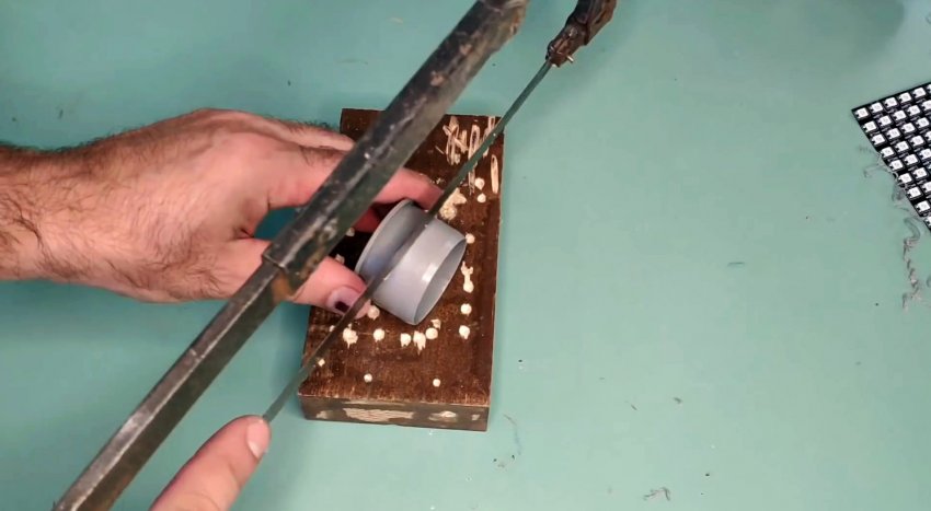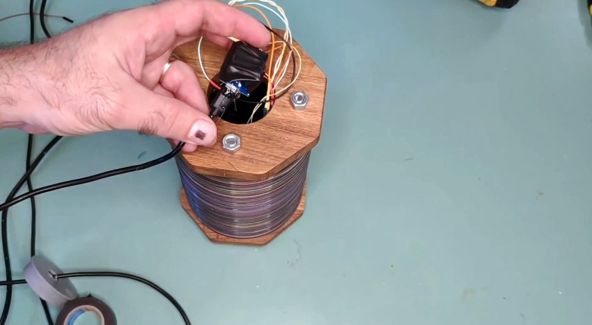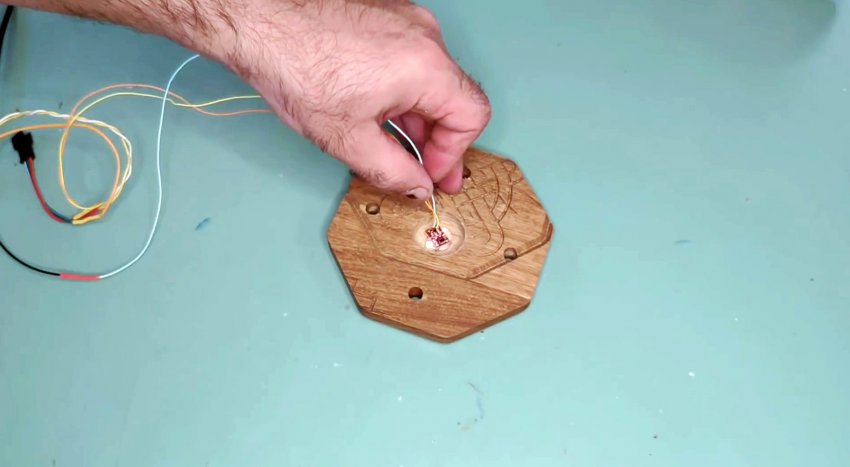 Далее модуль сворачиваться в трубочку и помещается в полость светильника. Кнопка устанавливается на крышку в высверленную полость.