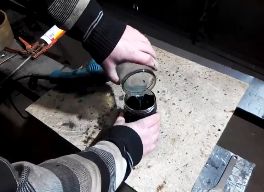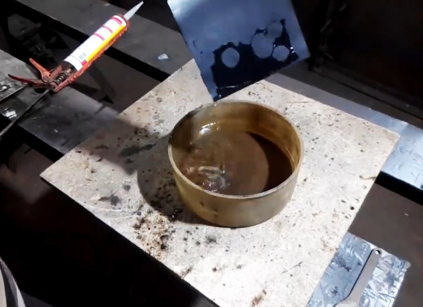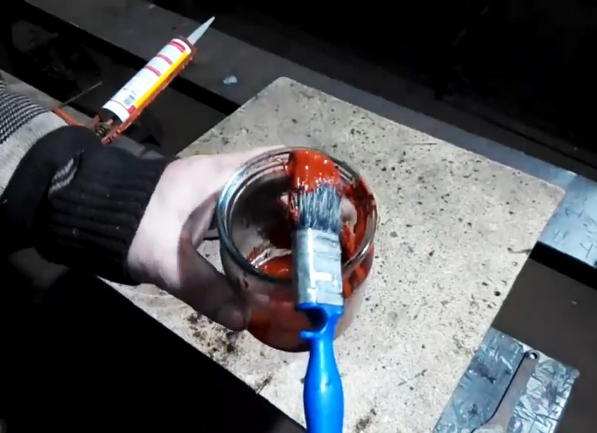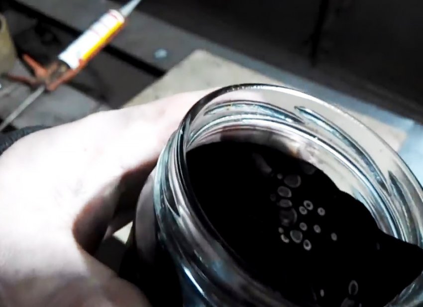 Затем в отдельную емкость набирается герметик и растворяется в бензине. На 1 л битума добавляется четверть тубы силикона. Бензина является растворителем.
