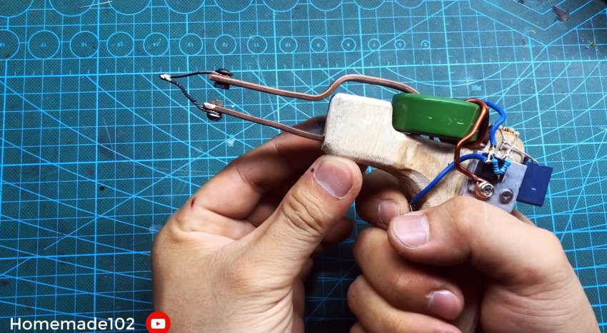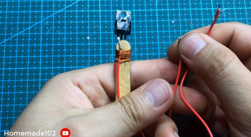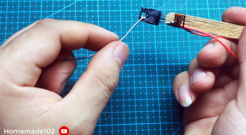 Между них укладывается палочка изолятор и приматывается. Теперь при подаче питания 12В постоянного тока, транзистор будет нагреваться.