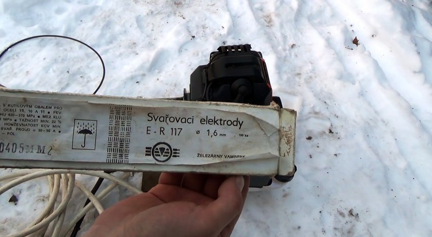 Для выполнения сварки требуется присоединить массу на деталь, и установить электрод тоньше 2 мм.