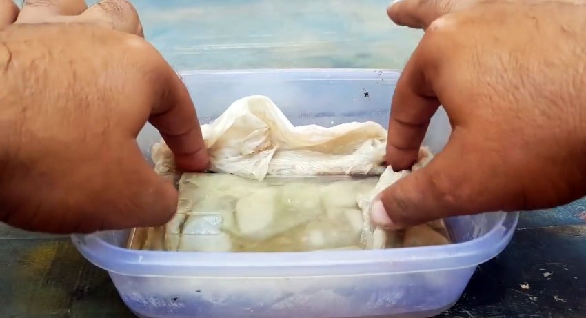 Сразу же произойдет бурная реакция, которая быстро прекратится. В этой ванне его следует выдержать 6 часов.