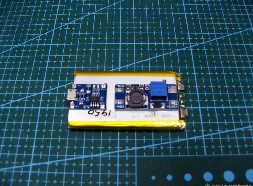 На двухсторонний скотч приклею модули. Соединю проводами, плюсовой разорву выключателем.