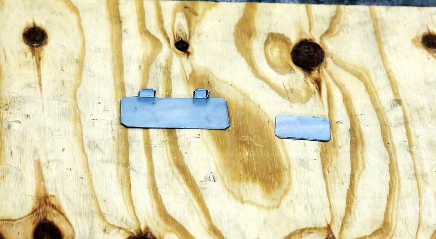 Ушки на первой подгибаются под прямым углом. Пластины нужно отшлифовать, чтобы убрать заусенцы, и срезать уголки.