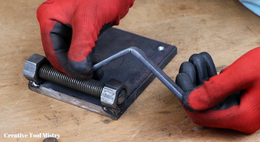 По ширине подошвы обрезается резьбовая шпилька. На нее накручиваются гайки. Затем они привариваются к краю подошвы.