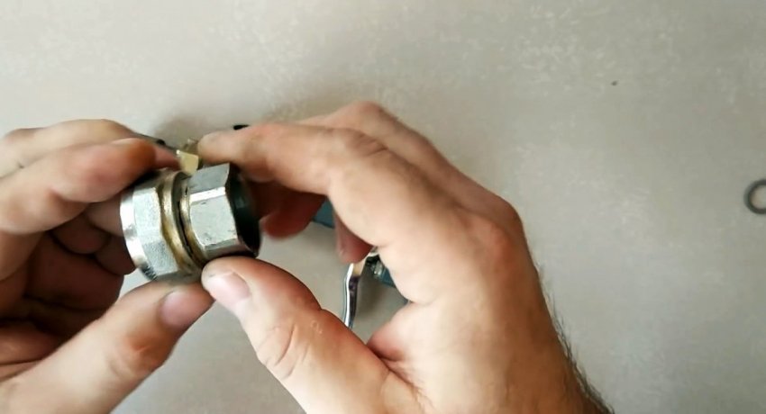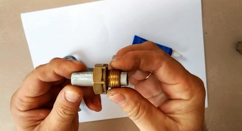 Напротив нее прикручивается сгон для счетчика, с впрессованным внутрь отрезком трубки. В данном случае подошла алюминиевая лыжная палка.