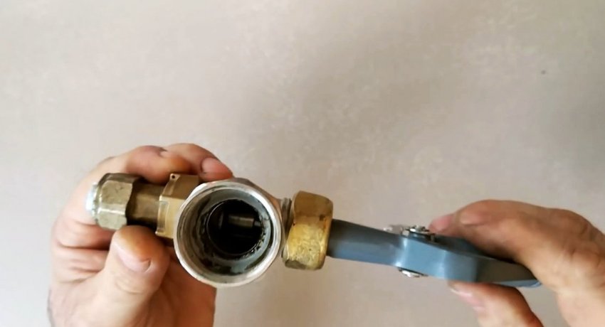 Теперь требуется спаять вместе гайки 3/4 и 1 дюйма. Они накручиваются на боковой выход тройника, и уже на них ставится воронка.