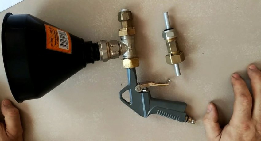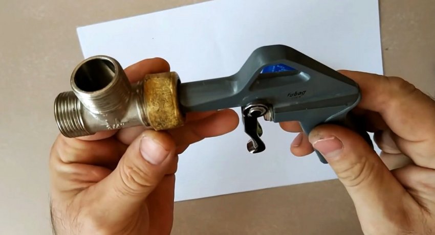 У продувочного пистолета снимается носик. На его резьбу надевается шайба подходящего размера.