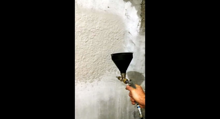 Таким пистолетом получится очень равномерно наносить жидкую штукатурку, в том числе и декоративную, а также шпаклевку. Если объем ресивера компрессора позволяет, то установив форсунку пошире, можно добиться весьма хорошей производительности.