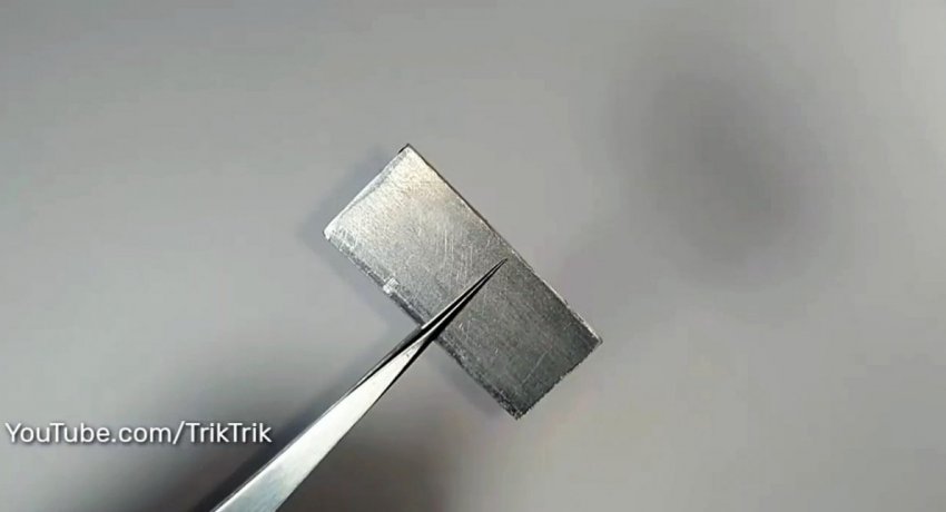 Далее нужно вырезать алюминиевую пластинку 35х15 мм. На нее наносится продольная линия по центру, а также разметка за 3 мм и 23 мм от одного края, и 4 мм от противоположного.