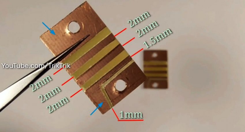Из печатной платы вырезается 2 пластины 26х15 мм.