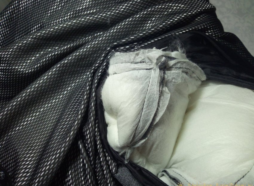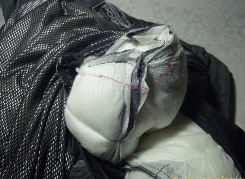 Затем через получившееся техническое отверстие надо вывернуть часть куртки с лопнувшим швом.
