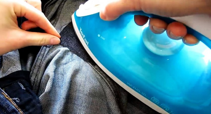 Джинсы выворачиваются наизнанку, и края дырки разглаживаются утюгом.