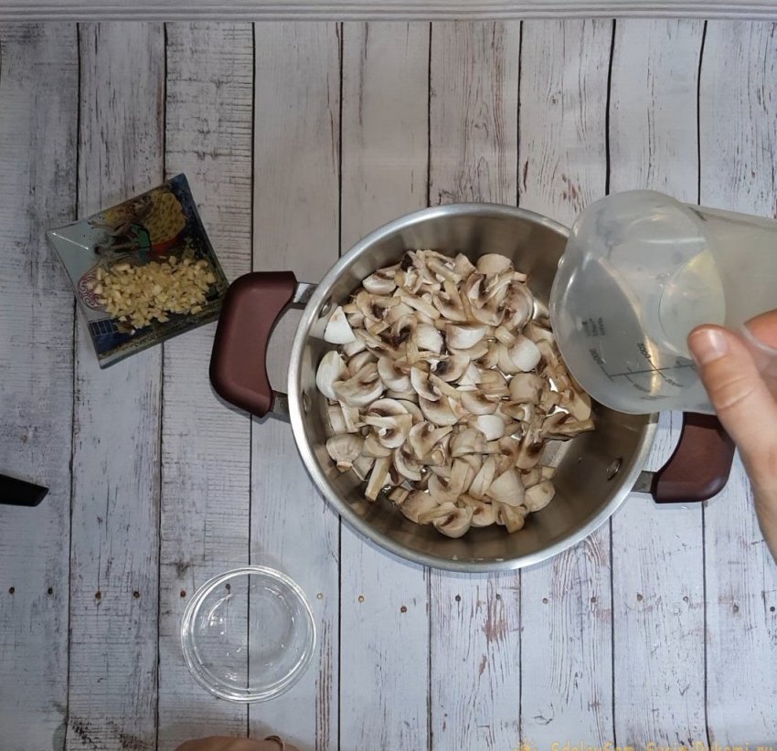 Грибы помыть, почистить, нарезать.