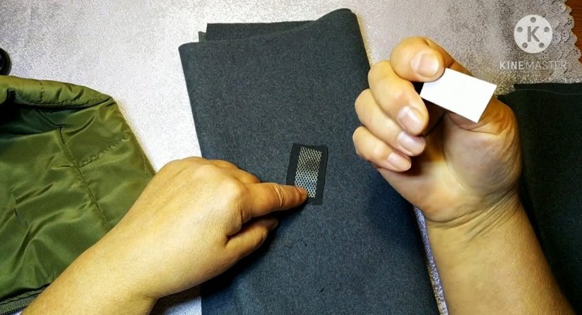 В специализированном магазине швейного инвентаря нужно купить клеевую ленту паутинку. Она используется для склеивания ткани. Для ее применения нужно подготовить заплатку. Подойдет любая ткань такой же плотности, как на куртке. Заплатка должна быть больше разрыва.