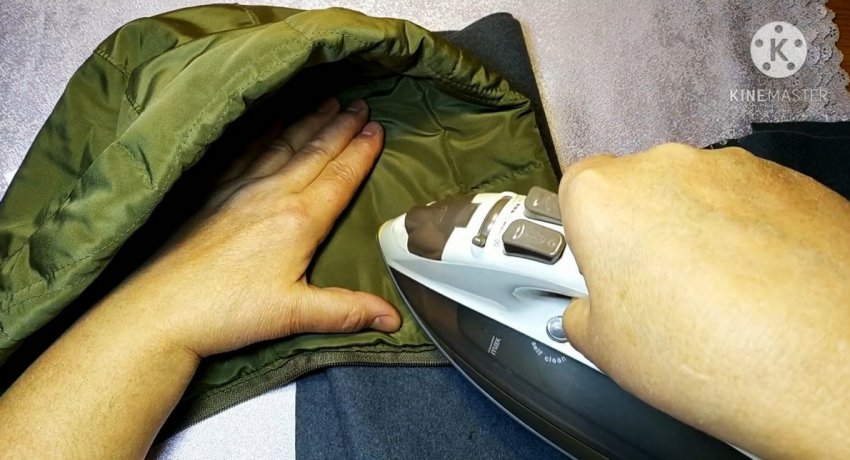 Теперь требуется вставить заплатку с клеем в разрыв, составить его края и прогладить горячим утюгом.