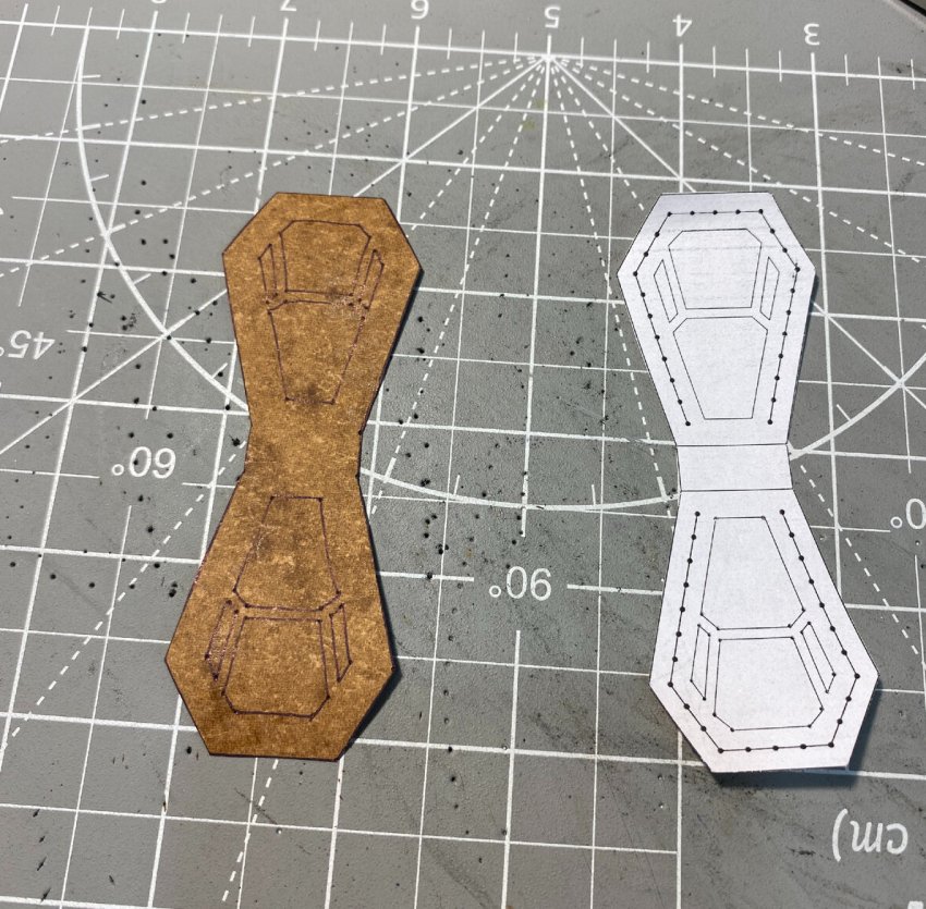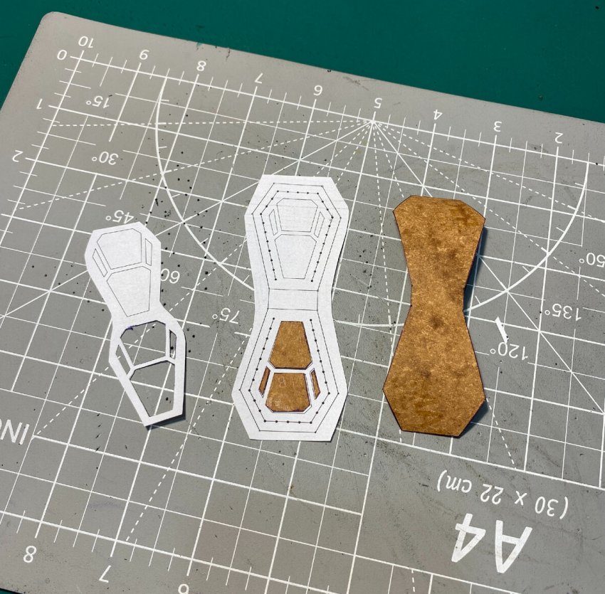 3. Следующая задача вырезать детали для подиума. Используем кожкартон 0,4 мм.