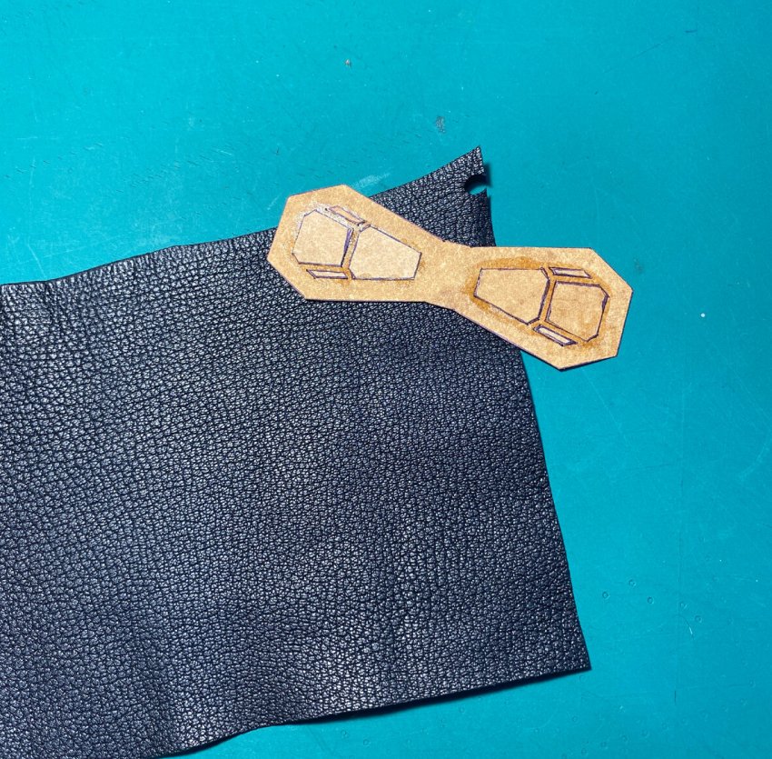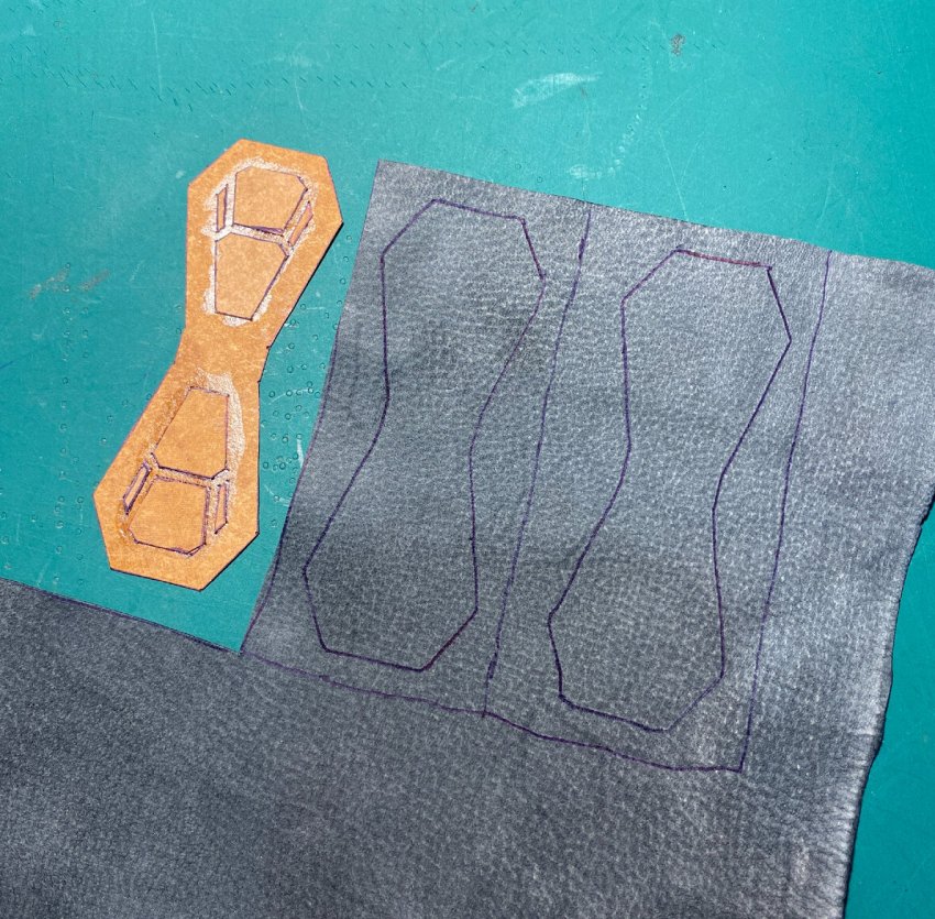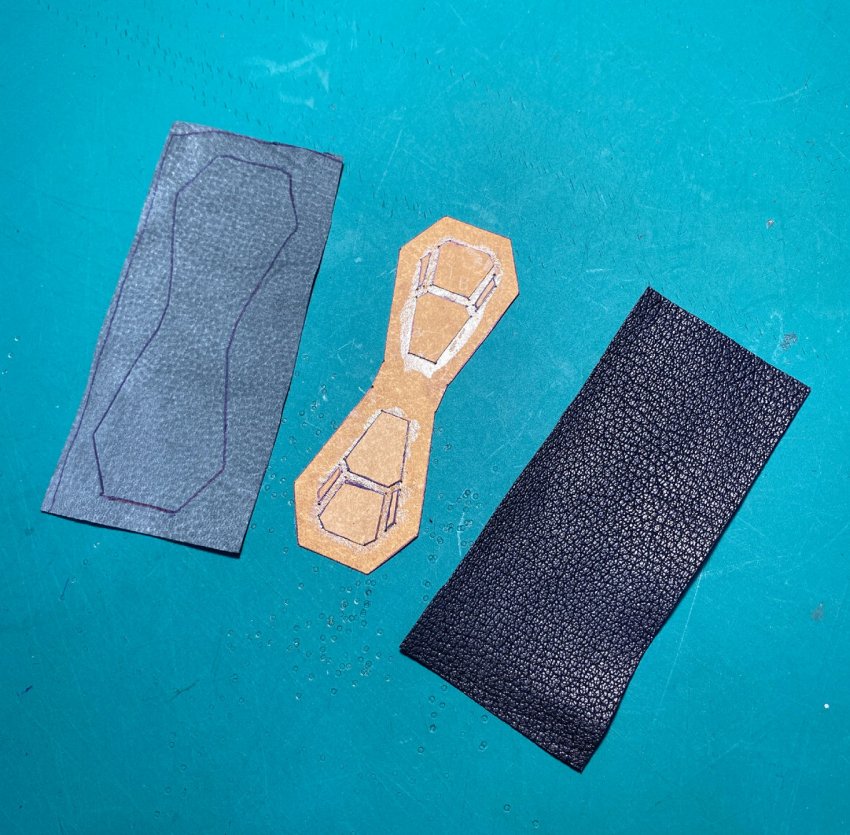 7. Подготавливаем отрезки кожи (лицевая и подклад). Использую кожу козы 0,5 мм.