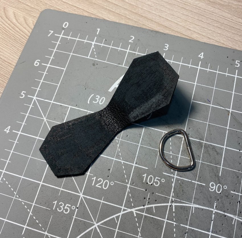 15. Красим торцы краской для уреза. Брелок из кожи козы 0,5 мм - ГОТОВ!