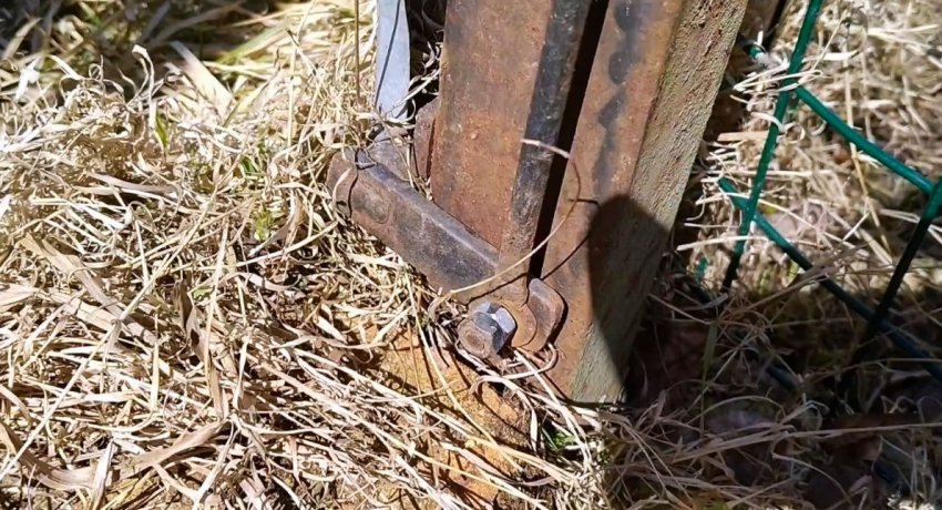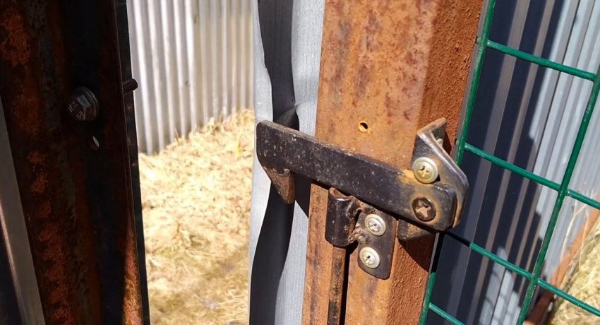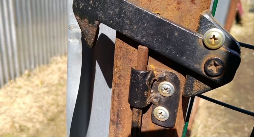 На раму калитки приваривается или вкручивается болт. Он послужит ответной частью замка, за которую будет цепляться крючок.