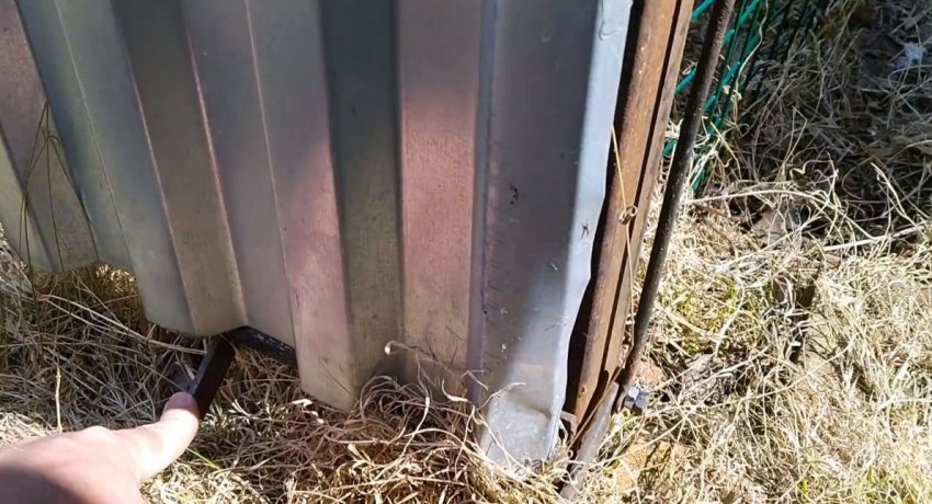 На столбик забора, примыкающий к калитке, прикручивается или приваривается кусок уголка. На него крепится крючок, вырезанный из полосы. Край крючка должен цеплять ответный болт на калитке. На уголке обязательно делается ограничитель для крючка, чтобы тот не переворачивался на другую сторону.
