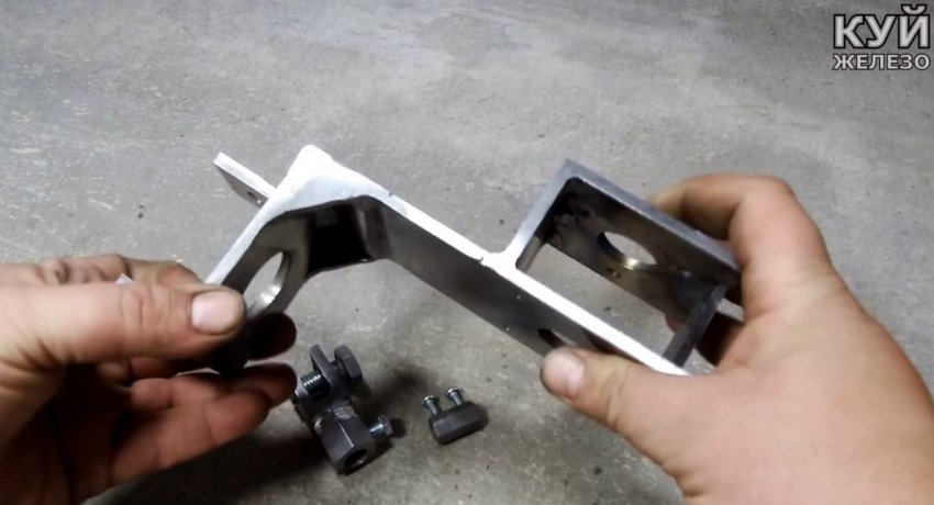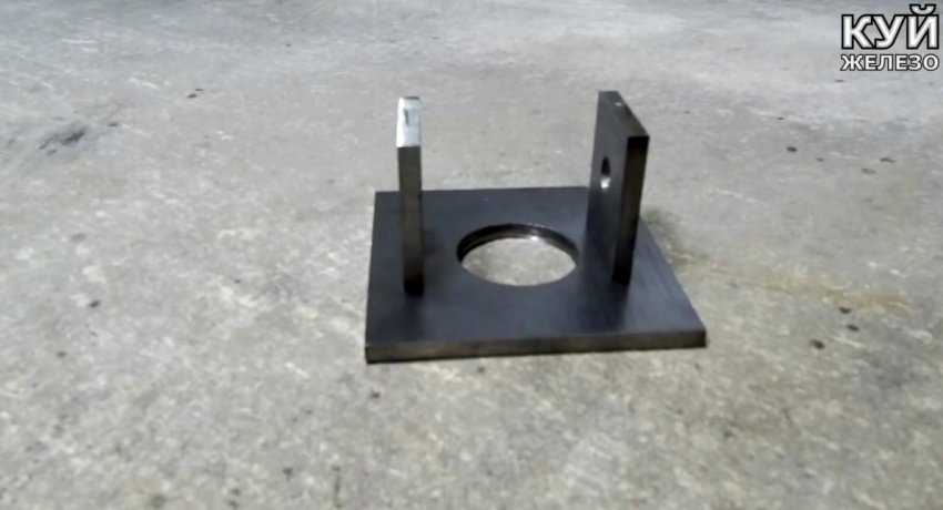 В вершине станины приваривается еще ода площадка крепления с проушинами, для прикручивания корпуса домкрата. В ней предварительно делается широкое отверстие для ввода винта домкрата.