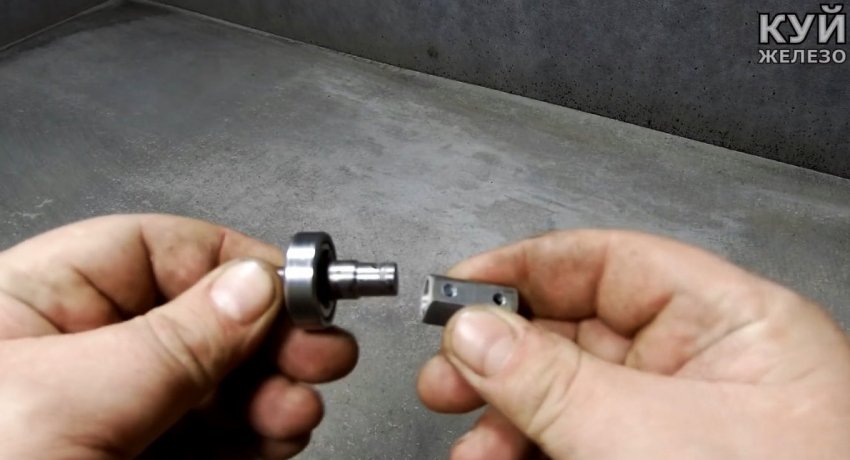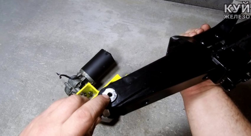 Ее вал обрезается. Под него из удлиненной гайки М8 делается переходник под мотор-редуктор от дворников. В ней просто просверливаются отверстия под шпонку, чтобы соединиться с валами.