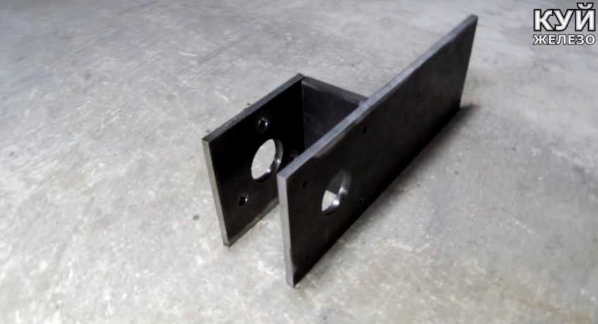 Она делается h-образной. В заготовках перед ее сваркой просверливаются отверстия под валы, а также под крепеж редукторов. Расстояние между площадками должны быть достаточным для установки переходника.