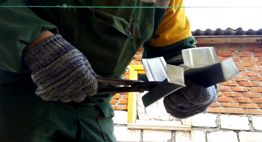 После этого ее необходимо прорезать вдоль ножницами по уголкам на 6-10 см. Теперь центральная часть профиля удаляется, оставляются только боковины.