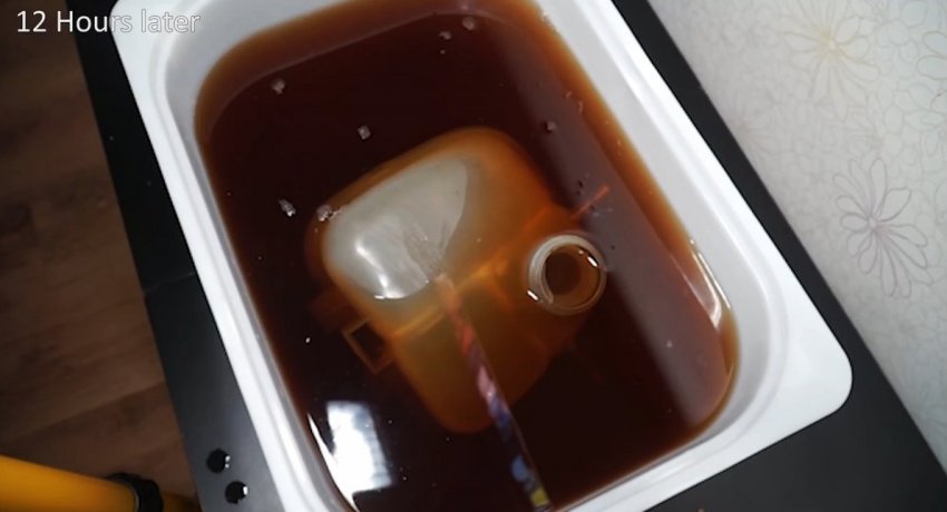 В зависимости от концентрации тот уберет всю желтизну за 12-24 часа, оставив идеально чистый белый пластик.