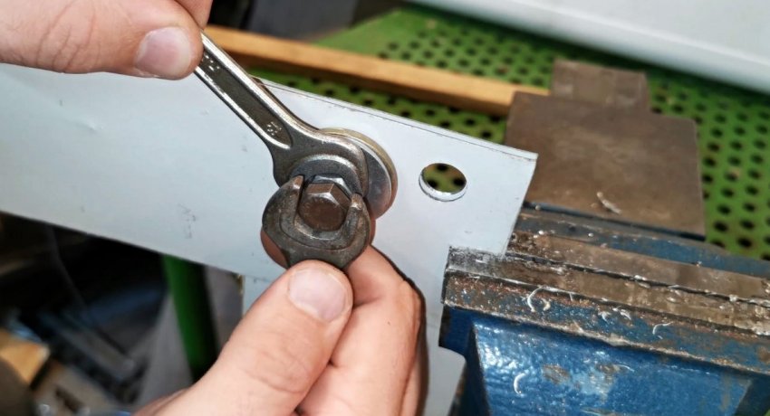 Далее головка болта удерживается одним гаечным ключом, а гайка скручивается с него вторым. В результате она потащит резьбу на себя, а так как болт не двигается, то заклепка расклепается не хуже, чем когда используется заклепочник.