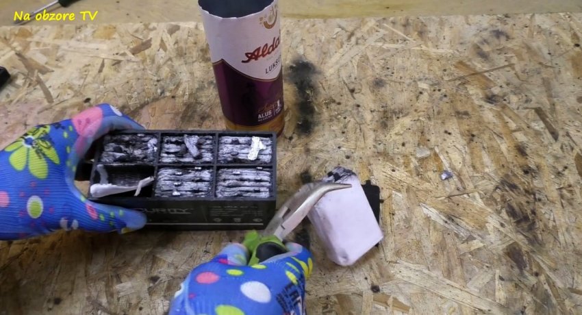 Из банок вытягиваются свинцовые пластины. Затем заусенцы от ножовки снимаются напильником. Глянцевая наружная поверхность зачищается наждачной бумагой, чтобы сделать ее матовой.