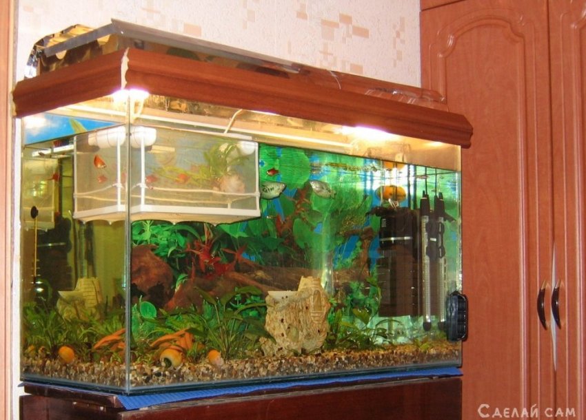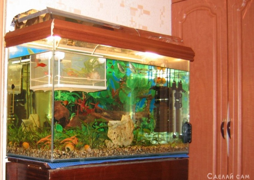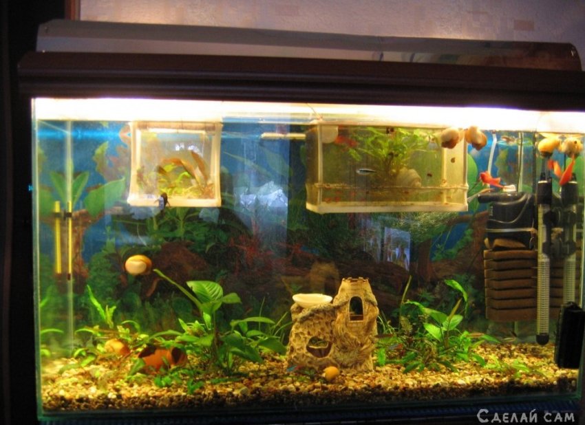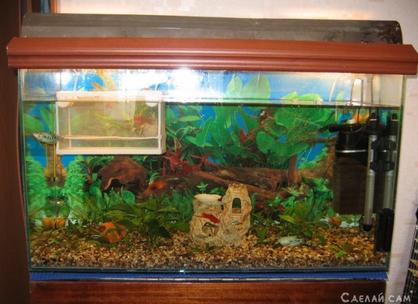 Как хорошо, когда в большом аквариуме много красивых рыбок. Правильно подобранные рыбки не дерутся, а хорошо уживаются. А когда появляется потомство, то надо позаботится и о детках. Надо чтобы малькам ничего не угрожало.