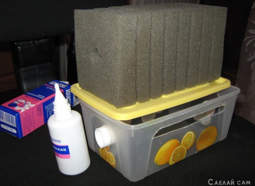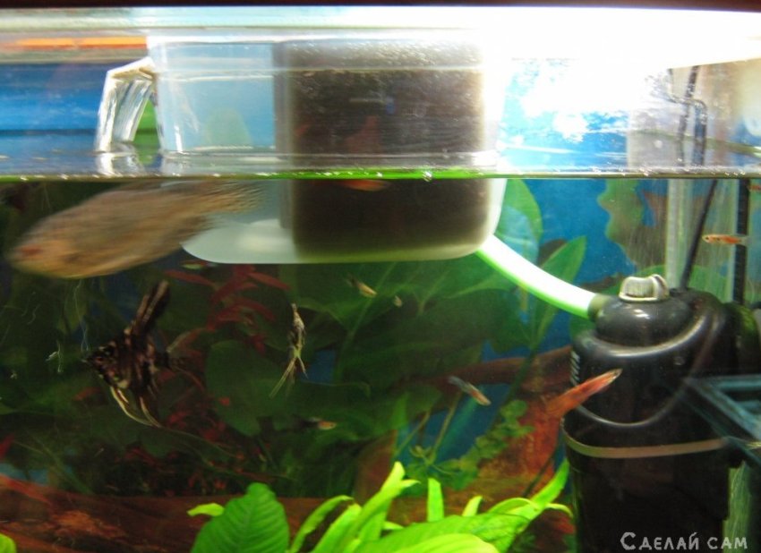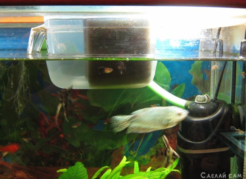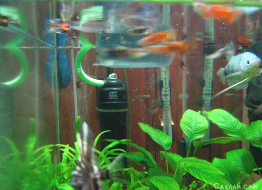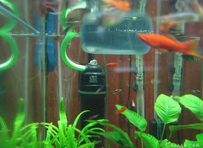 На снимках вы увидете внешний вид фильтра в работе, а так же сборку фильтра для аквариума чуть меньше предыдущего.