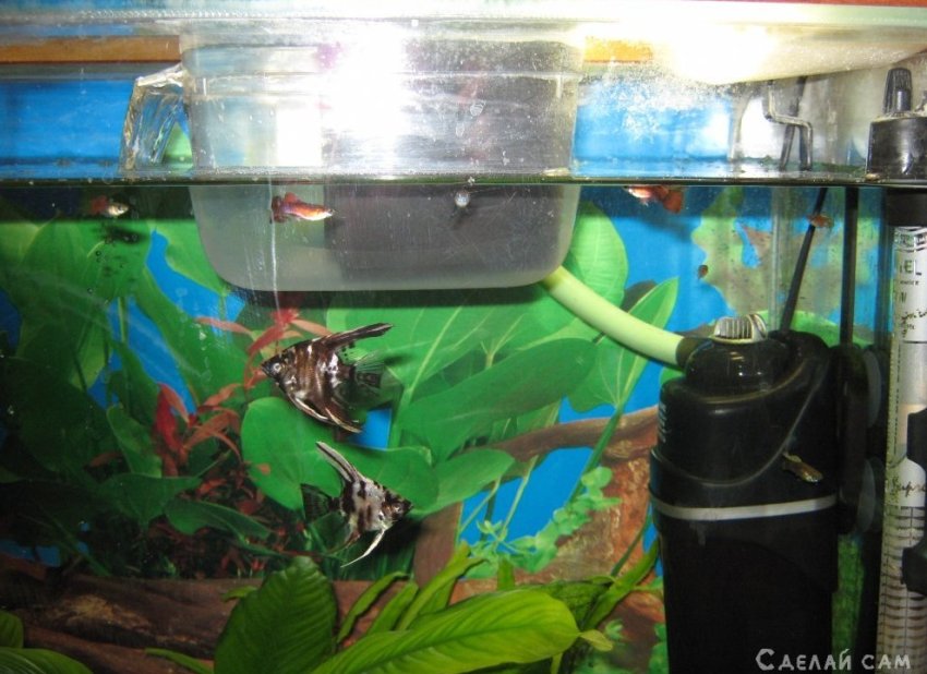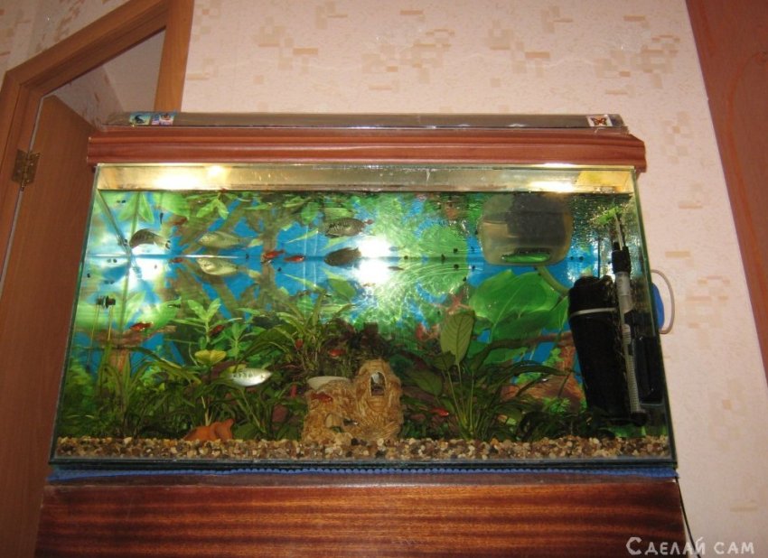 Водопад в аквариуме имеет много плюсов. Смотреть на водопад всегда красиво, слушать как шумит вода, как играют рыбы с пузырками от водопада. А самое главное мой водопад заменяет большой внешний фильтр. Всё что делаешь своими руками всегда приносит еще и удовольствие себе и людям которые это увидят.
