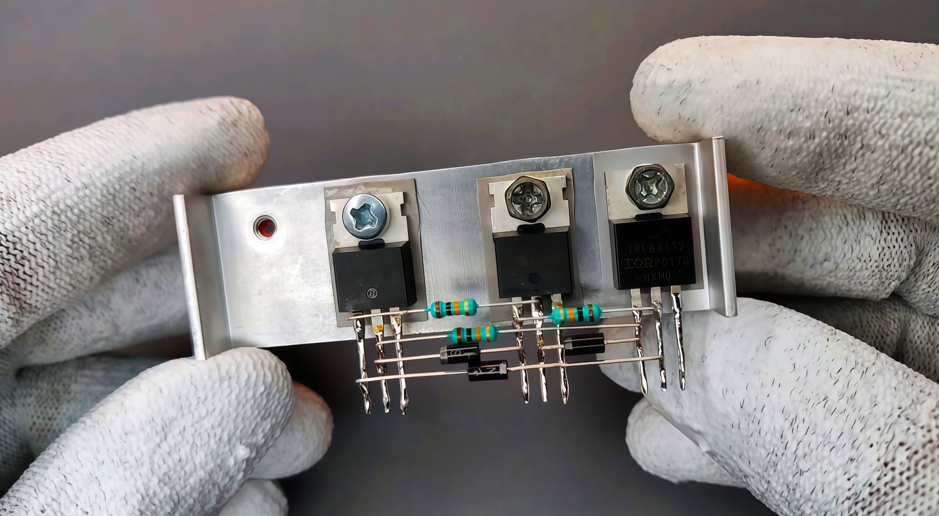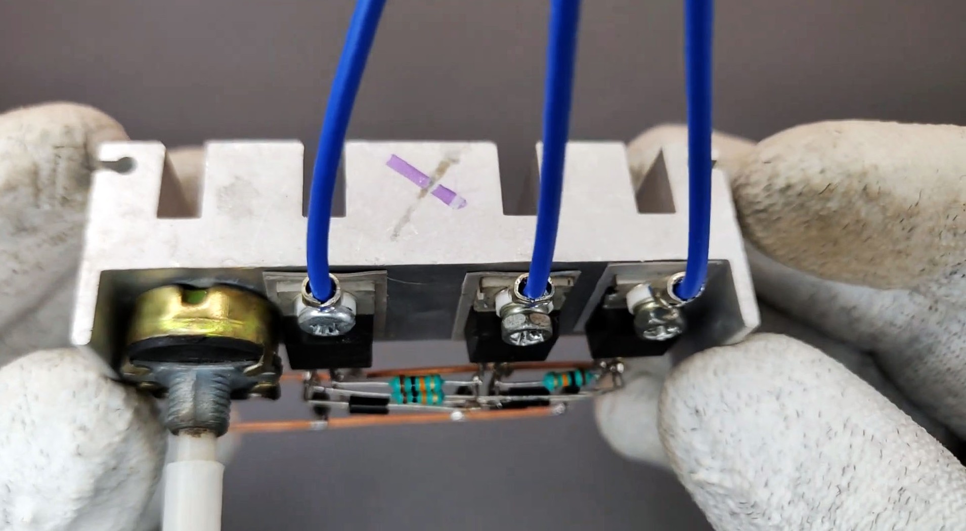 К стокам транзисторов прикручиваем силовые провода, которые пойдут на фазы бесщеточного двигателя.
