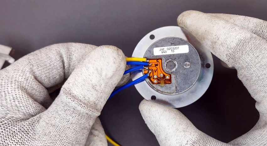 Подключаем драйвер к двигателю. Желтый к плюсу питания.